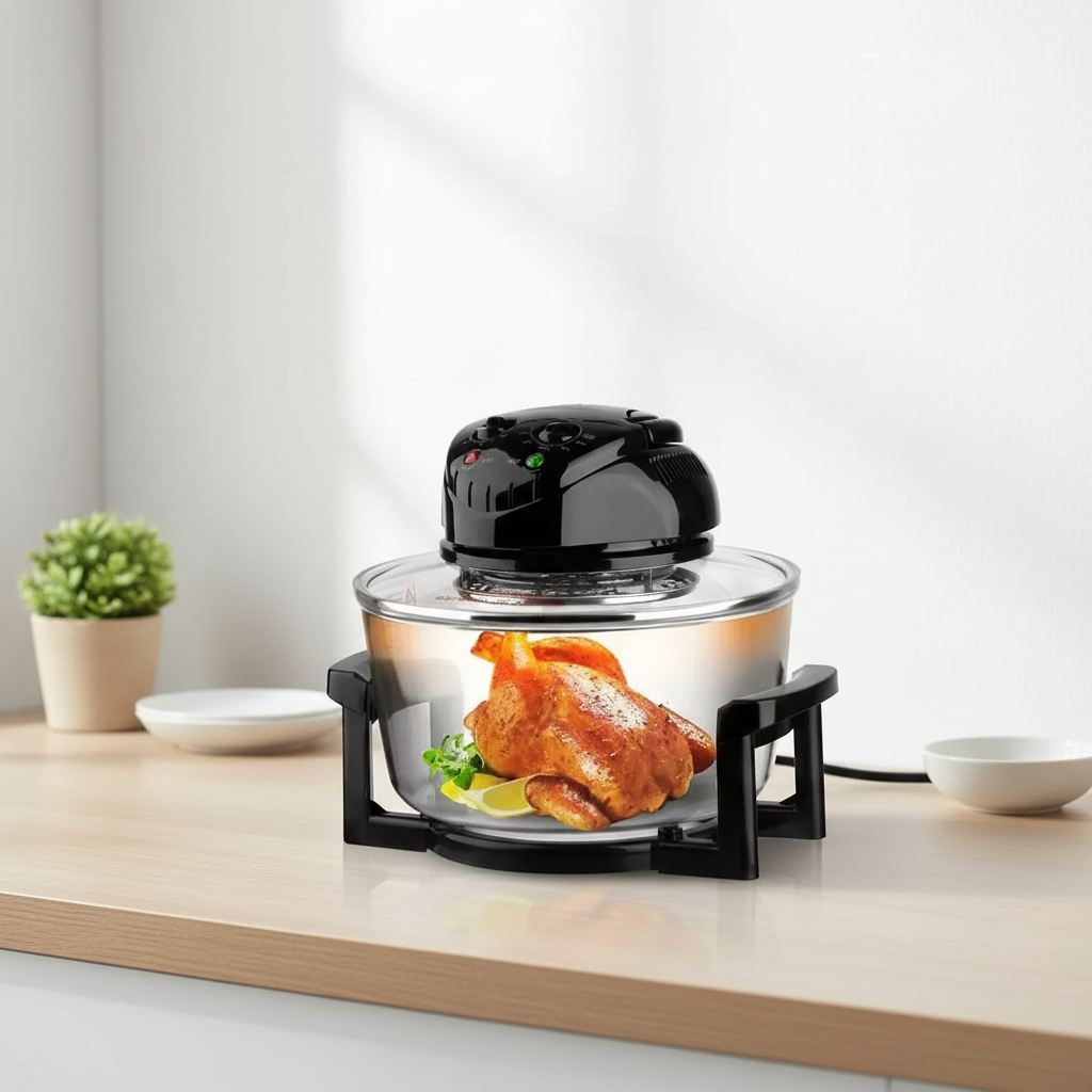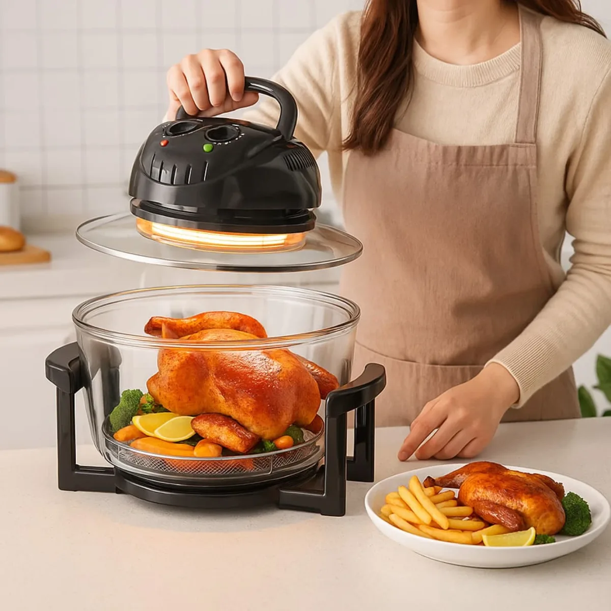 Con esta freidora de aire halógena de 12 litros y 3500W, podés preparar tus comidas favoritas usando mucho menos aceite, sin perder sabor ni textura. Es ideal para familias o para quienes disfrutan cocinar en cantidad, gracias a su gran capacidad.