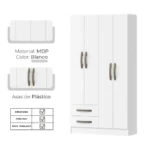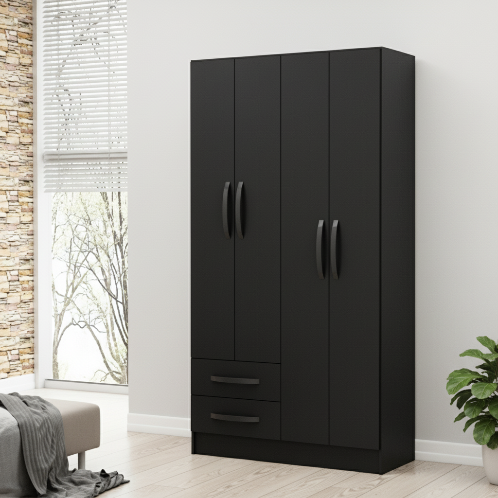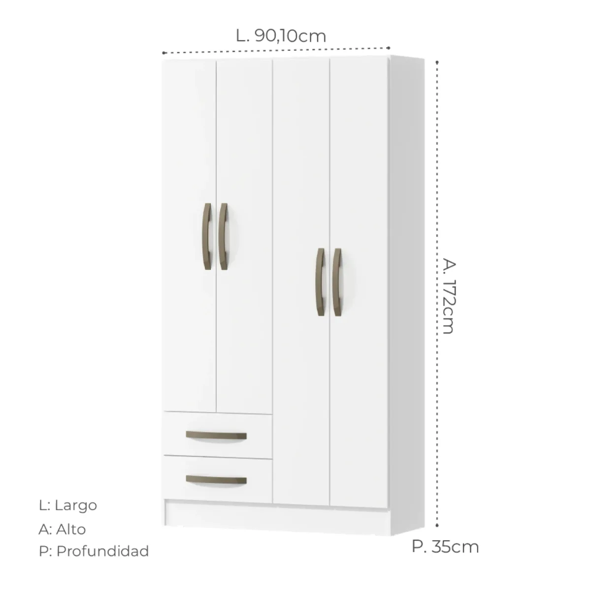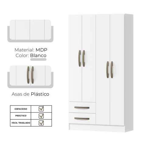 Este ropero es ideal para mantener toda tu ropa y accesorios bien organizados. Con sus 4 puertas, 2 cajones y estantes, tenés lugar de sobra para guardar desde lo básico hasta lo que usás en ocasiones especiales. Además, el perchero es perfecto para colgar esas prendas que querés cuidar un poco más.